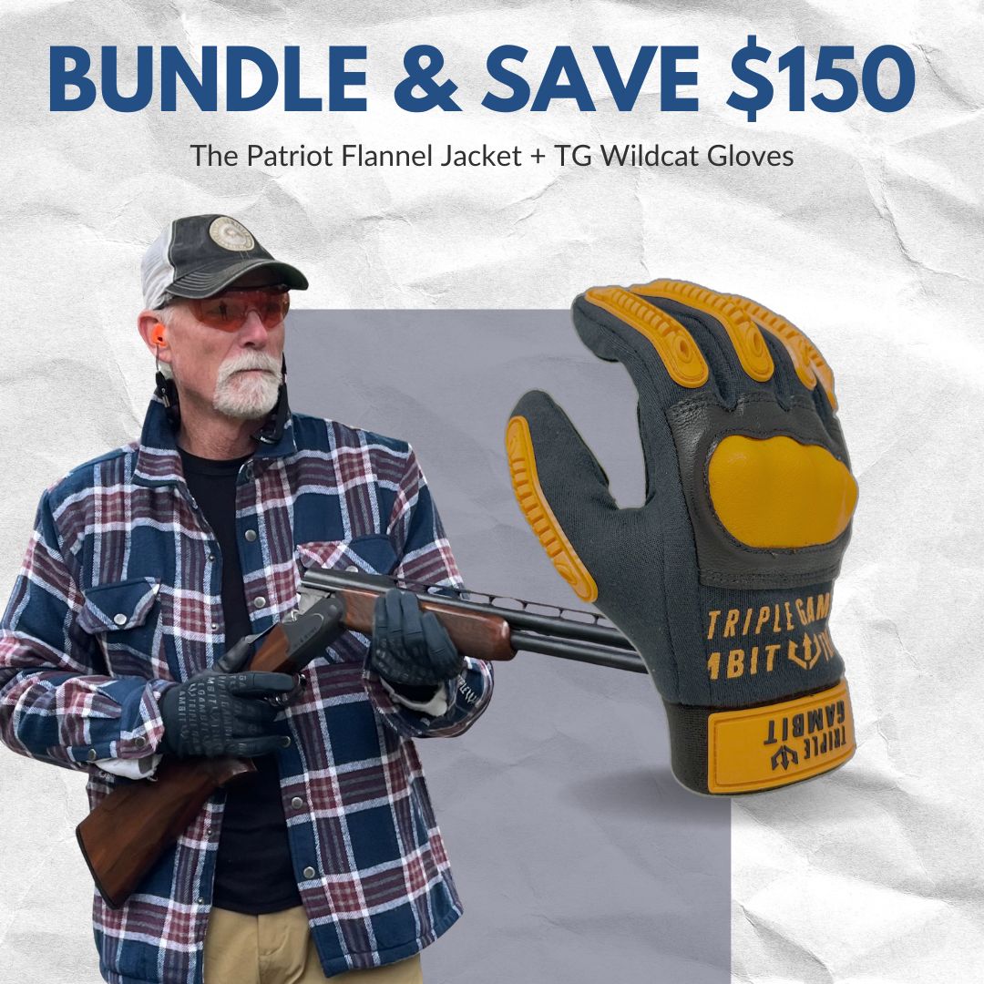 This bundle pairs the The Patriot Jacket’s protective flannel build with the TG Wildcat’s heat and impact-ready glove design.